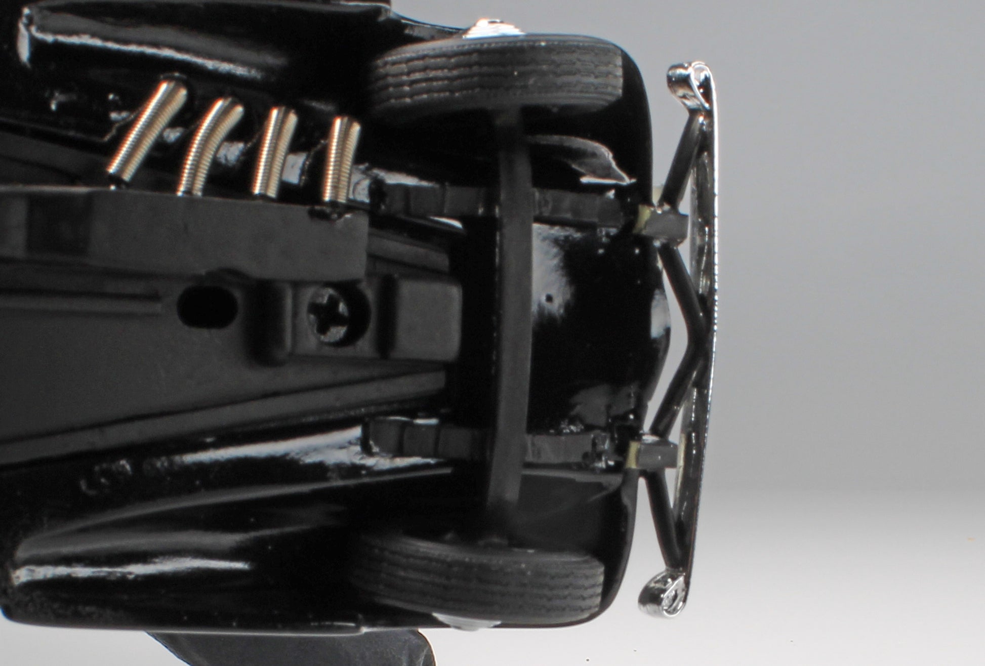 This beautiful Duesenberg displays very well, but it does have a small issue with the front wheels. It appears that the front suspension has been repaired, and the front wheels are misaligned. When viewed from one side or the other, it just appears that the front wheels are turned a bit, as if they were steerable (see images). Repair, or display as-is!