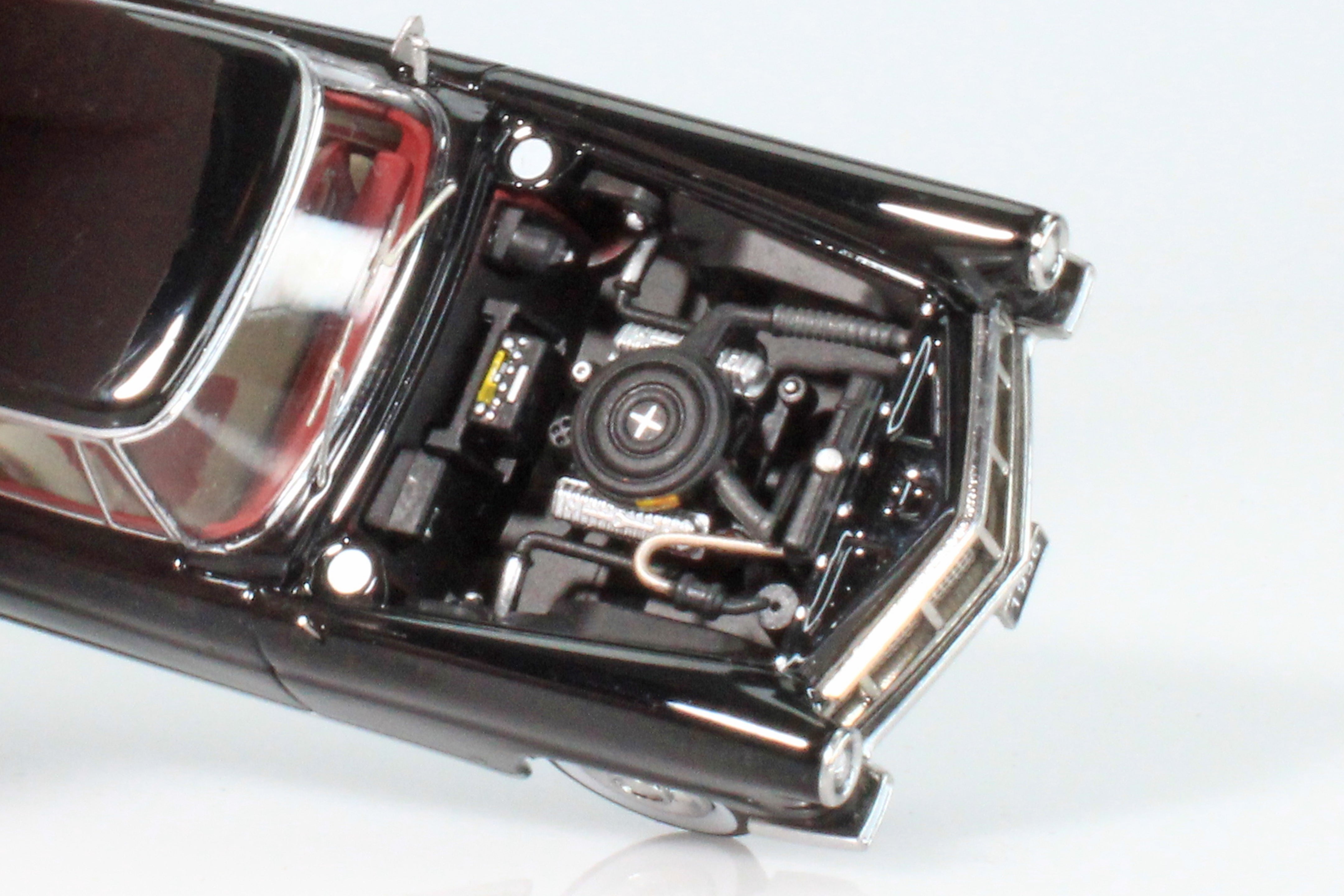If you only ever buy one 1:64 scale model in your life, this should be the one! This jewel-like model features an opening trunk (with flocking!), a magnetically-attached hood which can be removed to reveal the well-detailed engine, complete with decals on the battery and air cleaner!